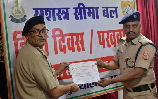 सशस्त्र सीमा बल सीमांत मुख्यालय में पदोन्नत कार्मिकों को रैंक लगाकर किया गया सम्मानित