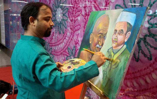 लखनऊ मेट्रो के हजरतगंज स्टेशन परिसर में चित्रकारों ने उकेरे चित्र। लखनऊ, 2 अक्टूबर 2025। कला जब स्मृति को स्पर्श...