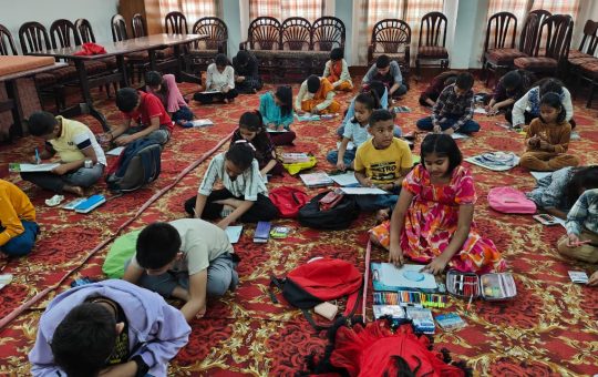 मां दुर्गा पूजा महोत्सव समिति गांधी चौक द्वारा आयोजित की गई अंतरविद्यालयी चित्रकला प्रतियोगिता