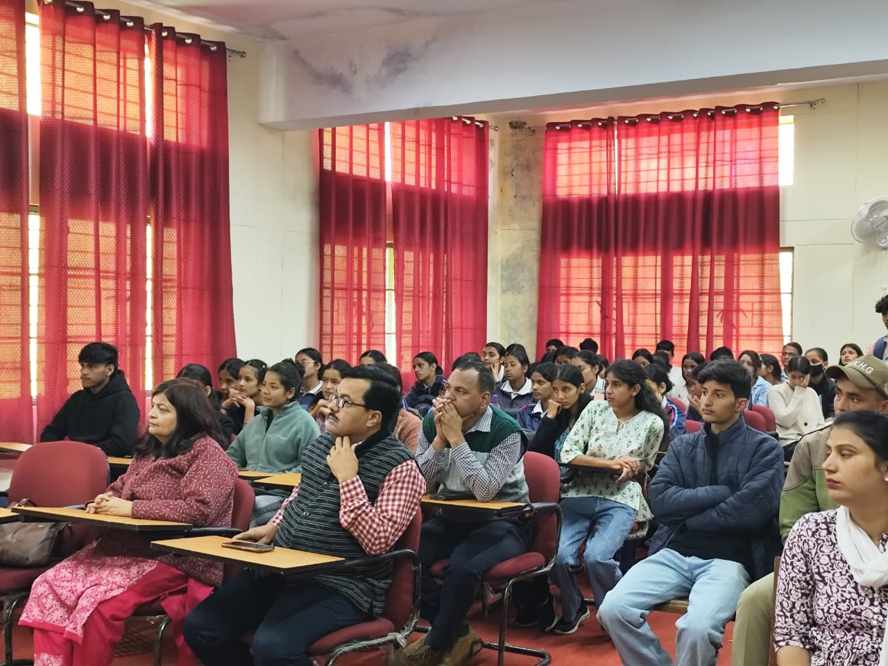 नवनिर्वाचित छात्र संघ अध्यक्ष हर्षित रौतेला के साथ साथ समस्त पदाधिकारी, एन एस एस, एन सी सी, रेंजर रोवर्स एवं महाविद्यालय के छात्र-छात्राओं ने व्याख्यान कार्यक्रम में उत्साहपूर्वक प्रतिभाग किया। कार्यक्रम के अंत में प्राचार्य डॉ प्राची जोशी ने आयोजक मंडल के सभी सदस्यों , आगंतुकों का धन्यवाद ज्ञापित किया । तथा राष्ट्रीय सेवायोजना के कार्यक्रम अधिकारी डॉ सत्य मित्र डॉ रेखा भट्ट तथा डॉ बबीता कांडपाल को सफल कार्यक्रम आयोजन की बधाई दी तथा भविष्य में भी इसी प्रकार के जागरूकता व्याख्यान कार्यक्रम को आयोजित करने इच्छा जताई।
