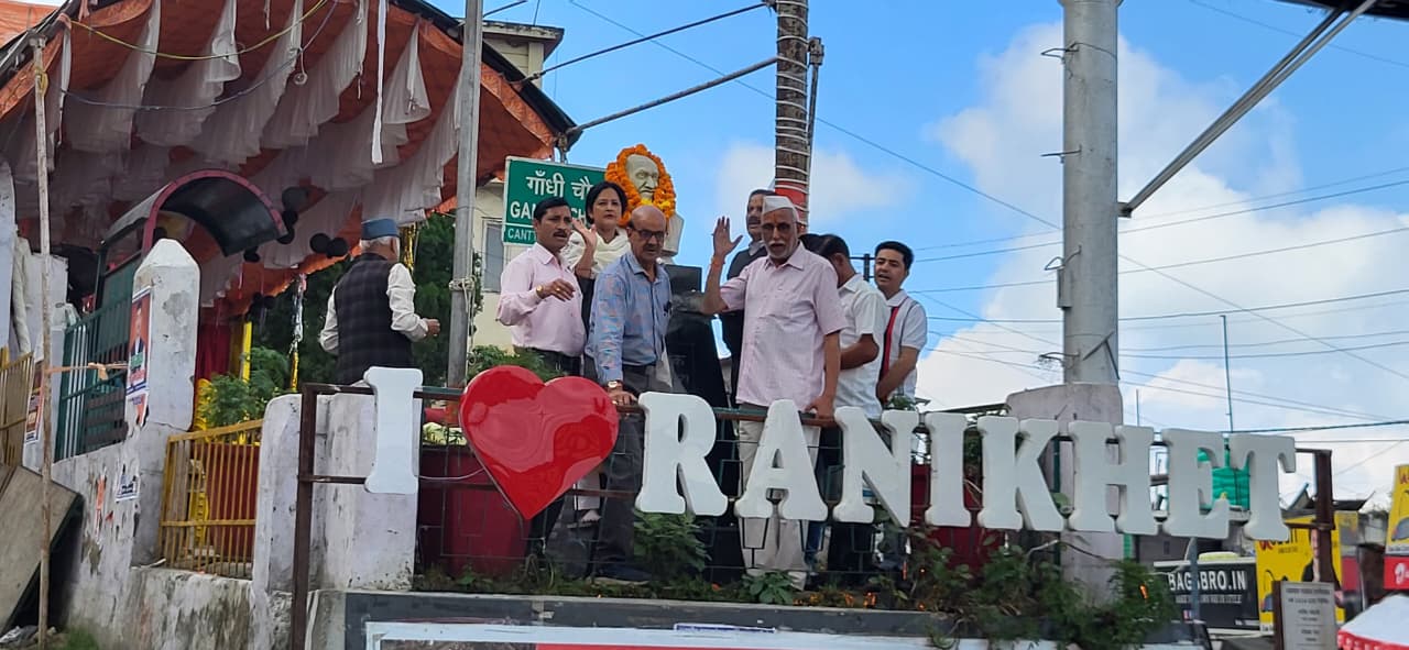 शनिवार को यहां मां दुर्गा पूजा महोत्सव समिति गांधी चौक के तत्वावधान में मां दुर्गा की भव्य शोभायात्रा निकाली गई।इससे पूर्व पूजा पंडाल में महाआरती की गई। शोभा यात्रा में रानीखेत इंटर कॉलेज व जे एंड जे सिटी मांटेसरी स्कूल के बच्चे शामिल रहे।शोभायात्रा शिवमन्दिर मार्ग,जरूरी बाजार, रोडवेज स्टेशन,सदर बाजार होकर पुनः गांधी चौक पहुंची जहां मां की सामूहिक आरती की गई।