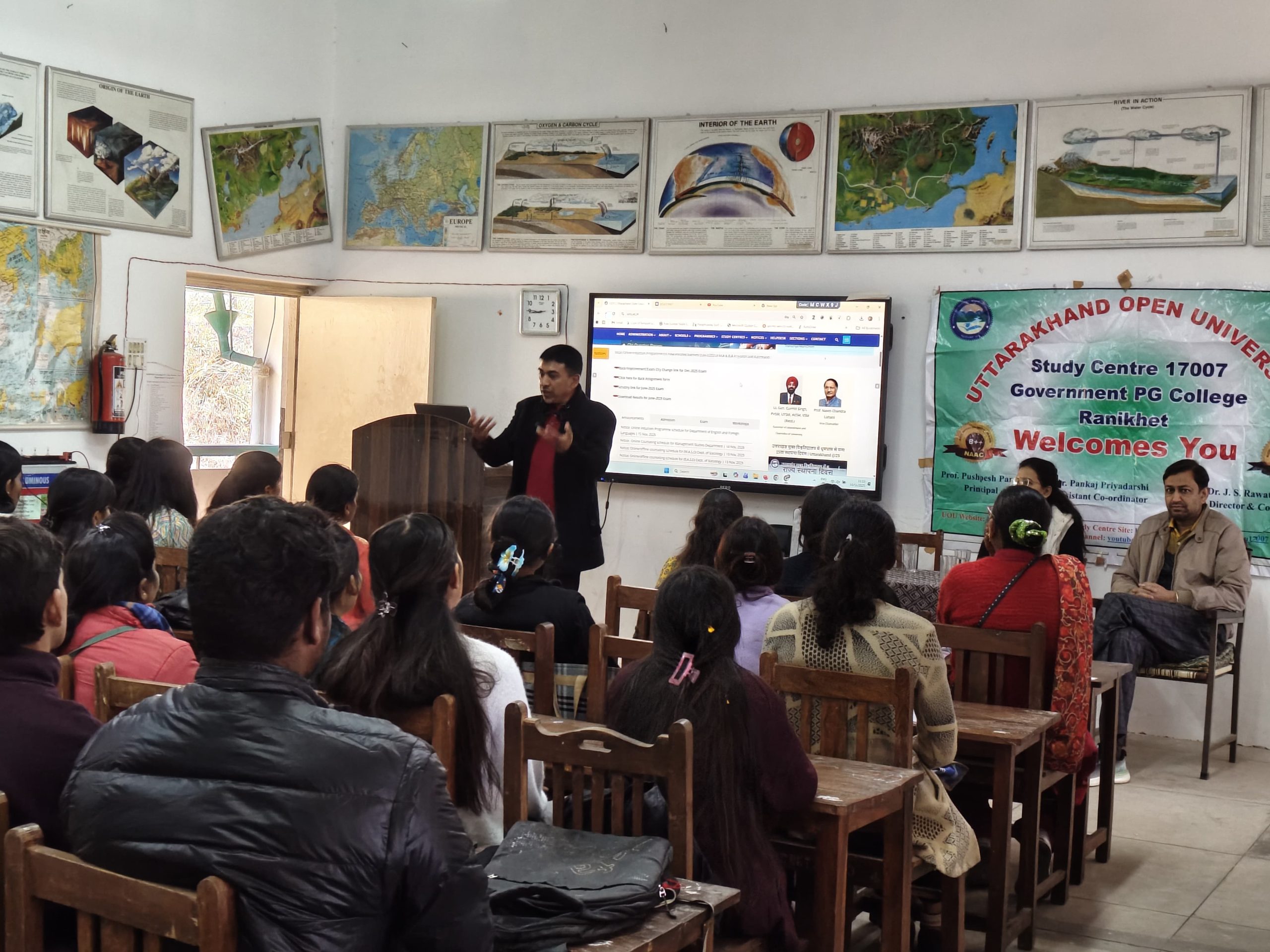इस कार्यक्रम का उद्देश्य विद्यार्थियों को विश्वविद्यालय की शैक्षणिक प्रणाली, प्रवेश प्रक्रिया, परीक्षा पद्धति, अध्ययन सामग्री, असाइनमेंट कार्य और ऑनलाइन शिक्षण संसाधनों से परिचित कराना था।कार्यक्रम के मुख्य वक्ता उत्तराखंड मुक्त विश्वविद्यालय, हल्द्वानी के क्षेत्रीय निदेशक डॉ. जे. एस. रावत रहे। उन्होंने अपने प्रेरणादायक उद्बोधन में मुक्त विश्वविद्यालय प्रणाली की विशेषताओं पर विस्तार से चर्चा की। उन्होंने बताया कि यह प्रणाली उन विद्यार्थियों के लिए अत्यंत उपयोगी है जो नियमित शिक्षा से वंचित रह जाते हैं, परंतु उच्च शिक्षा प्राप्त करने की आकांक्षा रखते हैं। डॉ. रावत ने विद्यार्थियों से अध्ययन में नियमितता, समय प्रबंधन और आत्मानुशासन को अपनाने का आग्रह किया। उन्होंने विश्वविद्यालय द्वारा उपलब्ध कराए जा रहे अध्ययन संसाधनों जैसे—स्व-अध्ययन सामग्री, रेडियो/टीवी व्याख्यान, तथा ऑनलाइन प्लेटफॉर्म के उपयोग के प्रति भी विद्यार्थियों को मार्गदर्शन दिया।