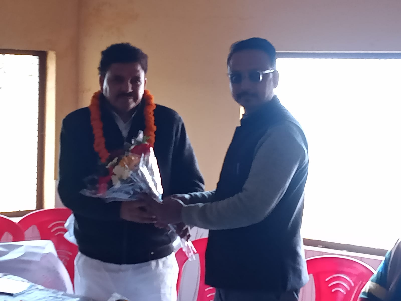 रानीखेत -शनिवार को यहां शिवमन्दिर धर्मशाला में हुई भारतीय जनता पार्टी की बैठक में विधायक डॉ प्रमोद नैनवाल ने नव मनोनीत जिला मोर्चा अध्यक्षों का फूल-मालाएं पहनाकर अभिनंदन किया।