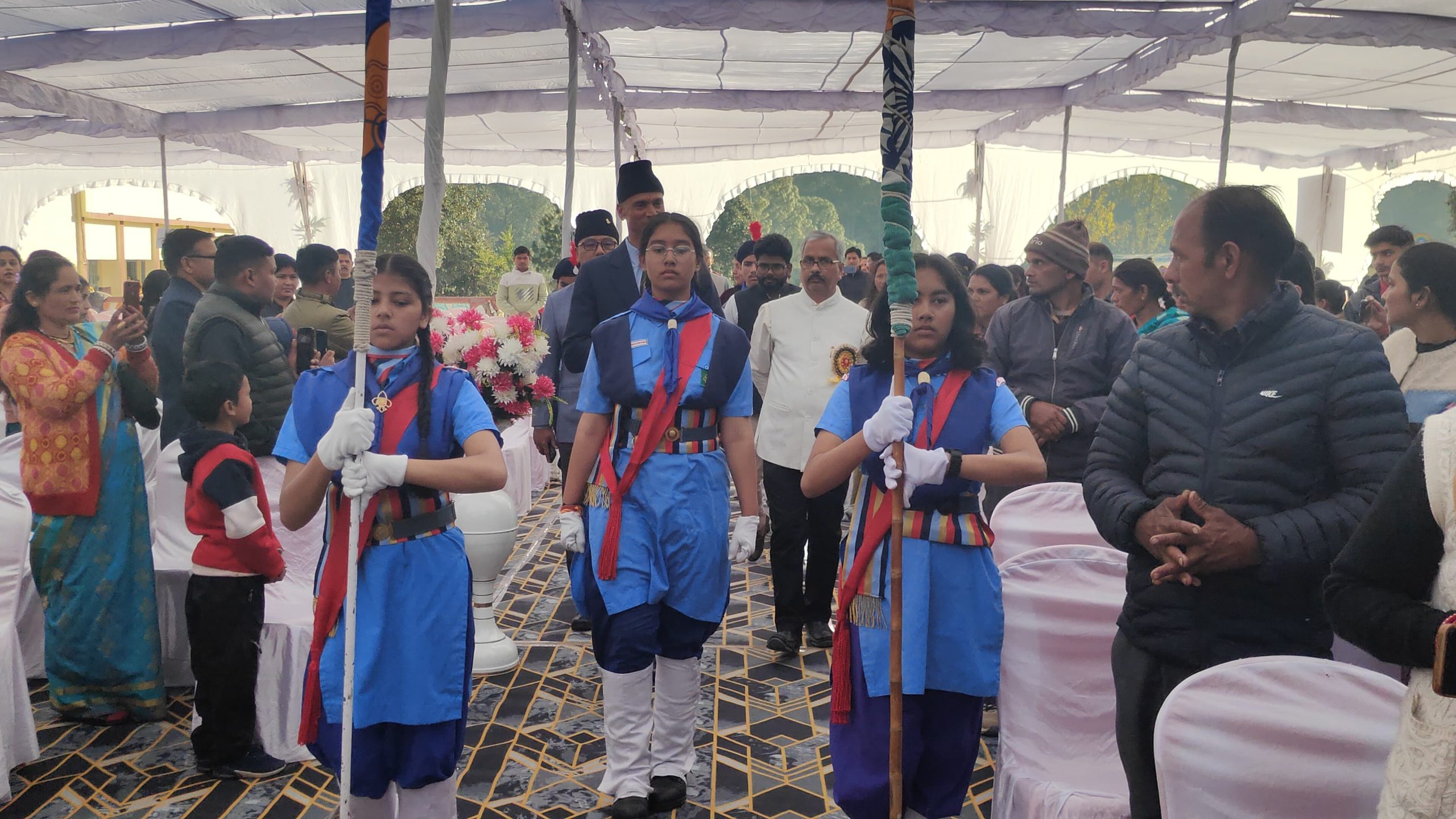 स्काउट कलर पार्टी के अनुरक्षण में मुख्य अतिथि एवं विशिष्ट अतिथि का कार्यक्रम स्थल पर आगमन हुआ, जहाँ उनका हरित स्वागत एवं बैज अलंकरण किया गया। इसके पश्चात् मंच पर प्रस्तुत सरस्वती वन्दना तथा स्वागत गीत ने पूरे वातावरण को मधुरता एवं सांस्कृतिक ऊर्जा से भर दिया।