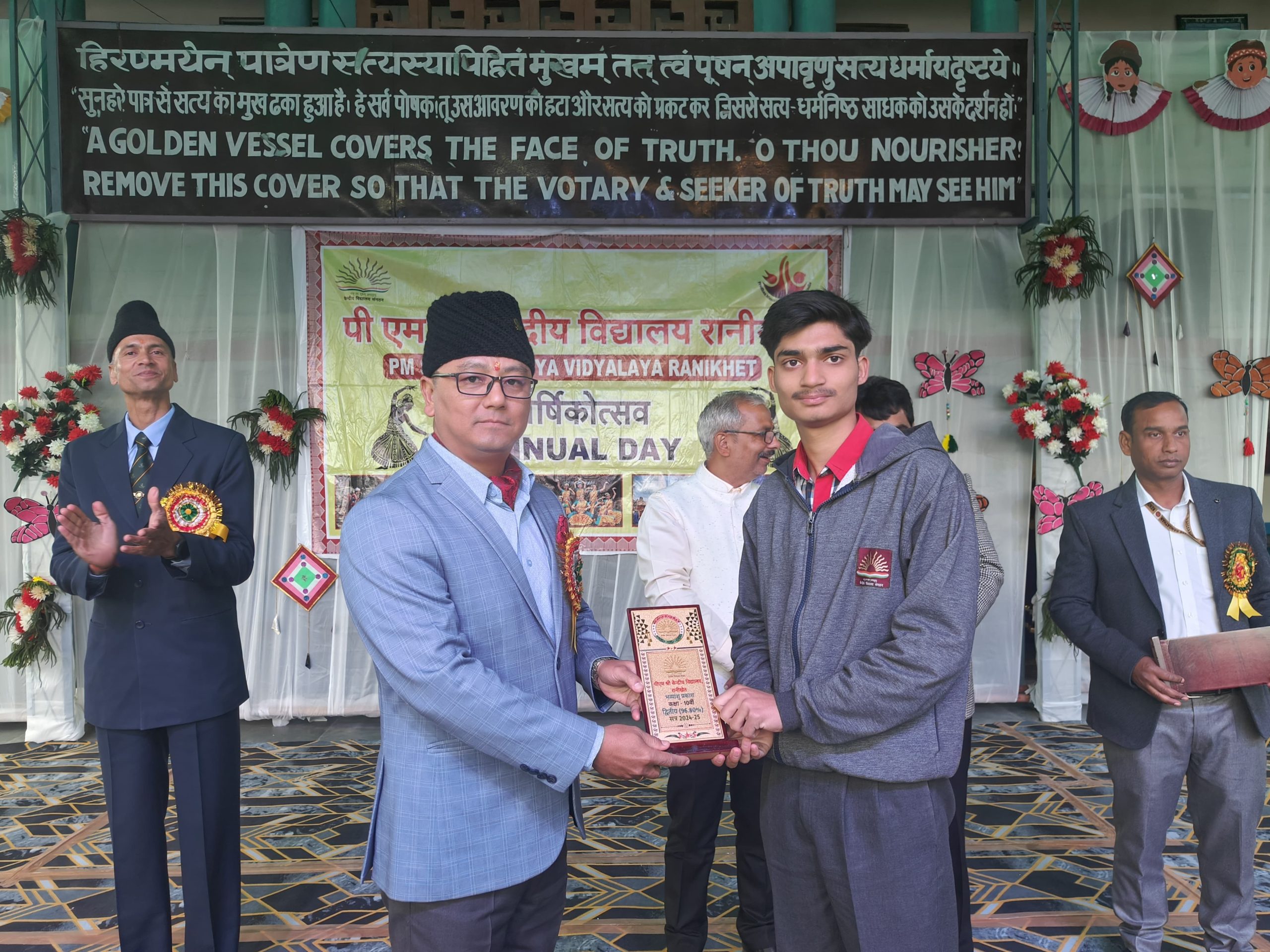 रानीखेत -पी.एम. श्री केन्द्रीय विद्यालय, रानीखेत का वार्षिकोत्सव 2025–26 उत्साह एवं हर्षोल्लास के साथ सम्पन्न हुआ। कार्यक्रम के मुख्य अतिथि कर्नल प्रभु रामदास वामन, डिप्टी कमांडेंट, कुमाऊँ रेजिमेंट सेंटर तथा विशिष्ट अतिथि लेफ्टीनेंट कर्नल बी. बी. थापा का विद्यालय बैंड द्वारा मुख्य द्वार से मंच स्थल तक भव्य स्वागत किया गया। मुख्य अतिथि ने माँ ज्ञानेश्वरी के समक्ष दीप प्रज्वलित कर कार्यक्रम का शुभारंभ किया।