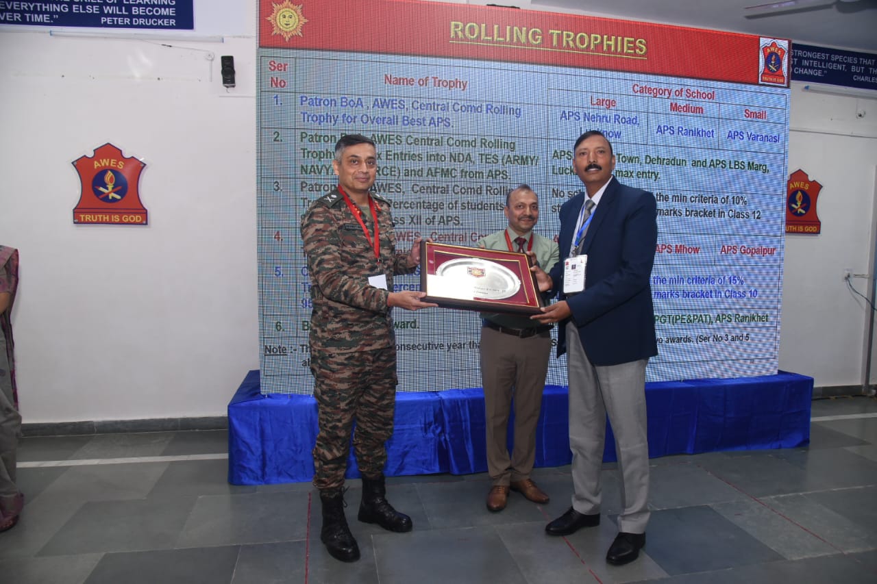 यह प्रतिष्ठित ट्रॉफी विद्यालय के प्राचार्य कमलेश जोशी ने मेजर जनरल नवनीत नारायण, एमजी आई सी एडम, से प्राप्त की।इसी अवसर पर विद्यालय के शारीरिक शिक्षा शिक्षक सैम हॉवर्ड स्मिथ को कमांड जोन में उत्कृष्ट बोर्ड परिणामों हेतु “सर्वश्रेष्ठ शिक्षक पुरस्कार” से सम्मानित किया गया।
